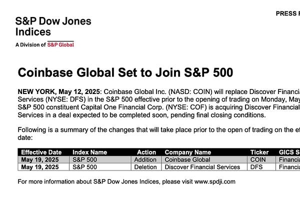KW21: Coinbase wird in den S&P 500 aufgenommen und Staaten investieren in Bitcoin-ETFs