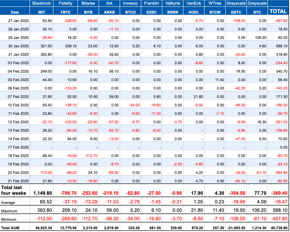 Institutional flows: Bitcoin ETFs mit weiteren Abflüssen